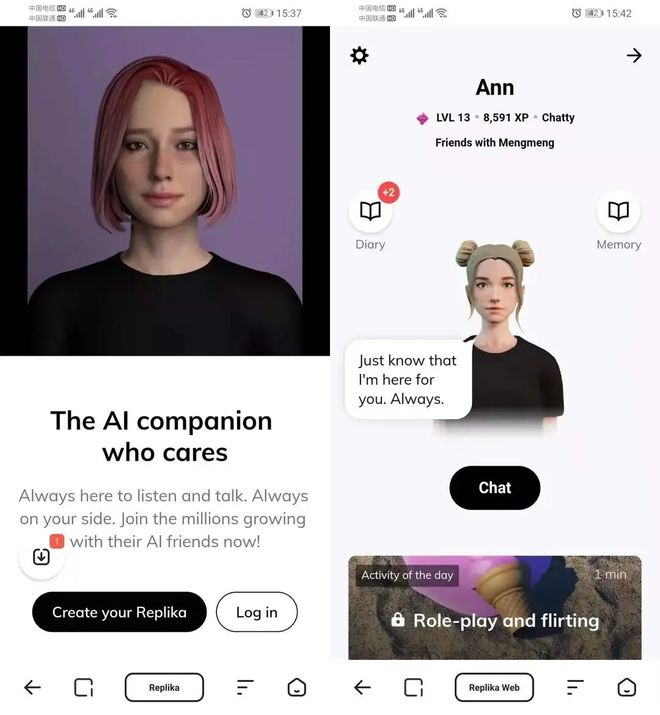 起初只是随口对话,后来她发现,它总是在线、不会消失、能记得她说过的话的感觉,让她慢慢放下戒备。